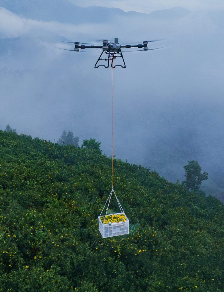 O T100 se transforma em uma solução de transporte. Com capacidade máxima de levantamento de 100 kg. Recursos como controle automático de balanceamento, detecção de peso e navegação automática para pontos de carga e descarga o tornam adaptável a diversos cenários de transporte agrícola.